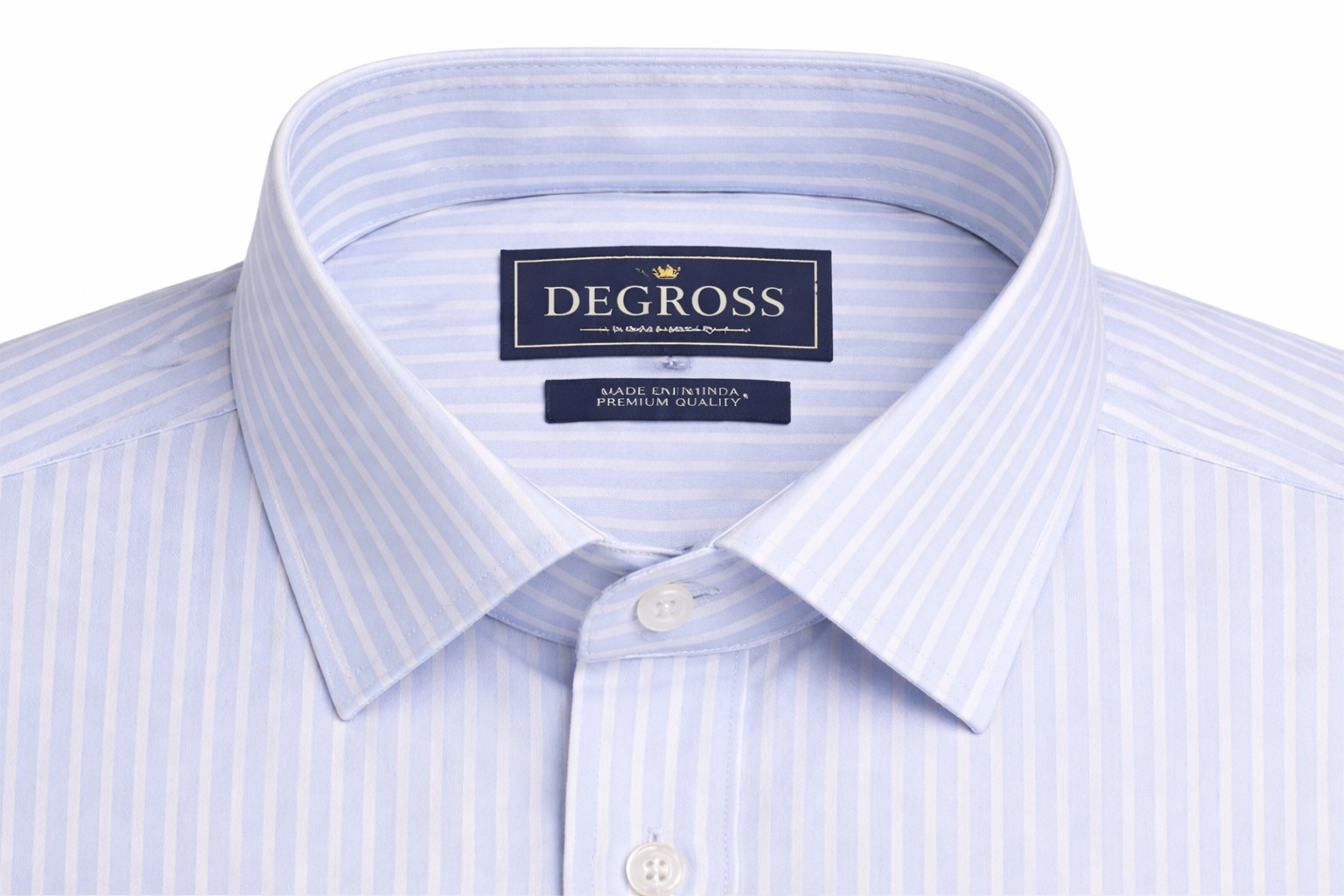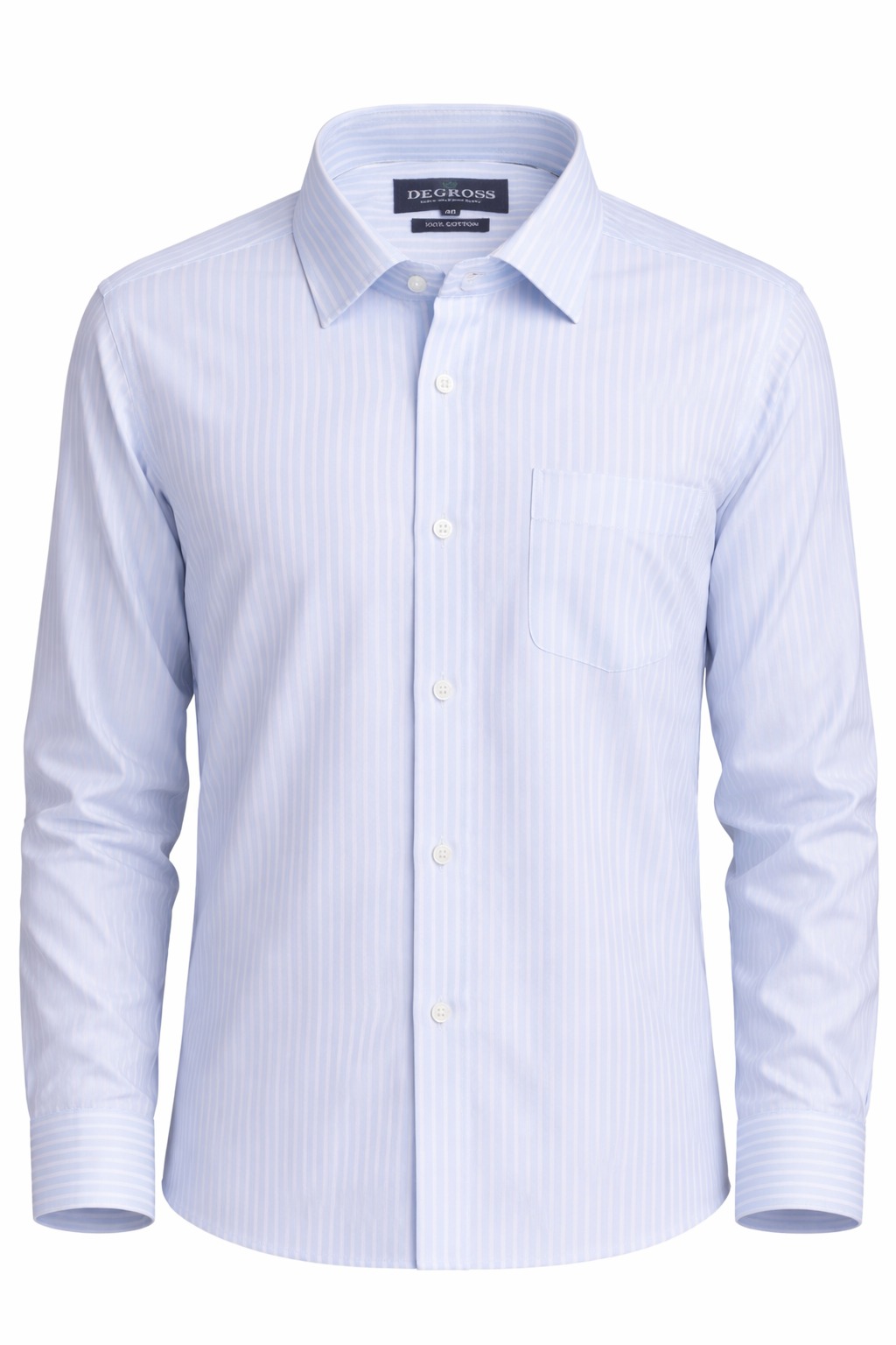 Enhance your formal wardrobe with this sophisticated light blue striped shirt from Degross. Tailored in a comfortable regular fit, it offers a clean and structured look while ensuring ease of movement throughout the day.