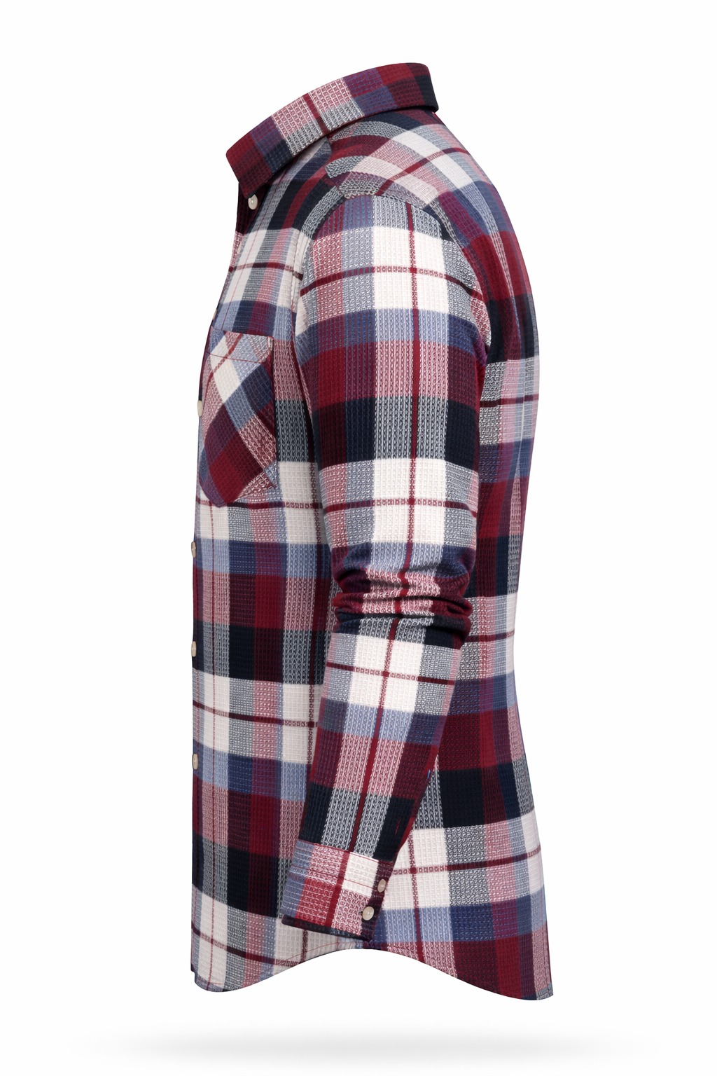 Made from premium cotton fabric, this shirt ensures breathability and long-lasting comfort. The bold check pattern in maroon, navy, white, and grey adds a timeless appeal, making it ideal for casual outings, weekend wear, and informal office settings.