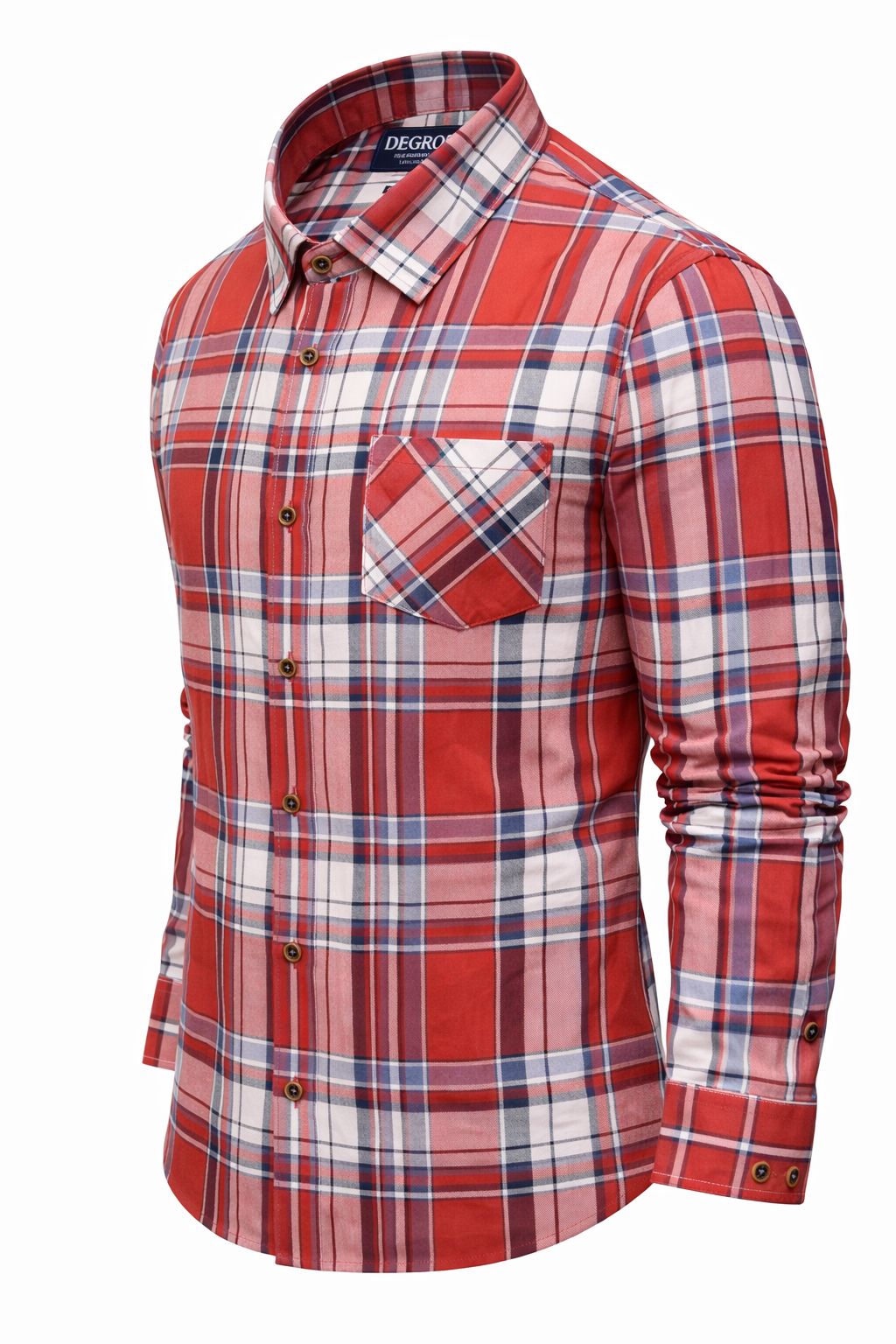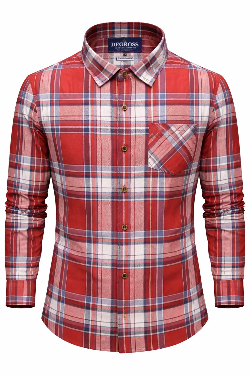 Add bold character to your wardrobe with this red and blue checked shirt from Degross. Tailored in a comfortable regular fit, it provides a structured yet relaxed silhouette suitable for daily wear.