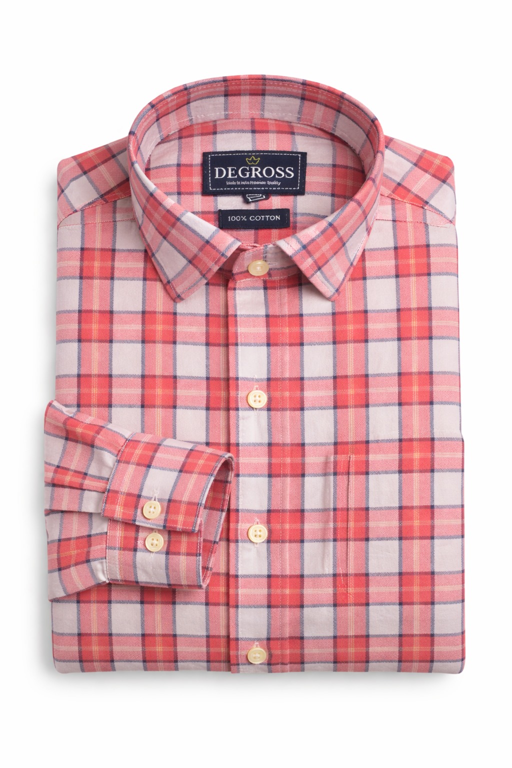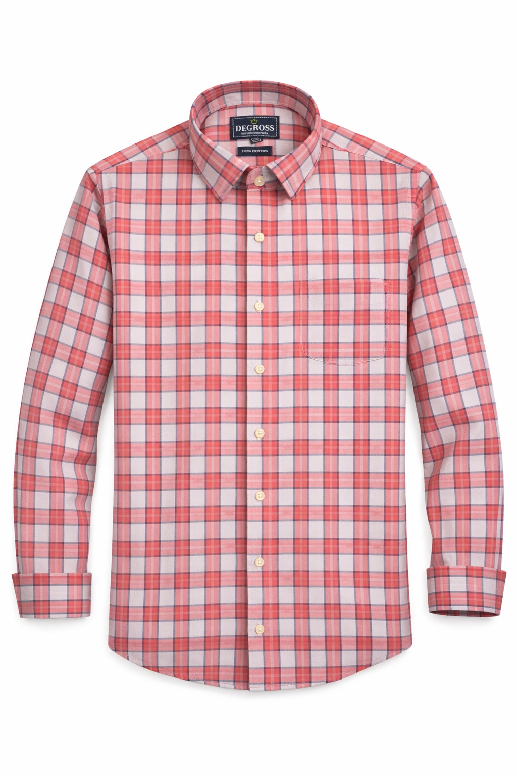 Add a fresh and stylish touch to your wardrobe with this red and white checked shirt from Degross. Tailored in a comfortable regular fit, it offers a relaxed yet structured silhouette perfect for daily wear.