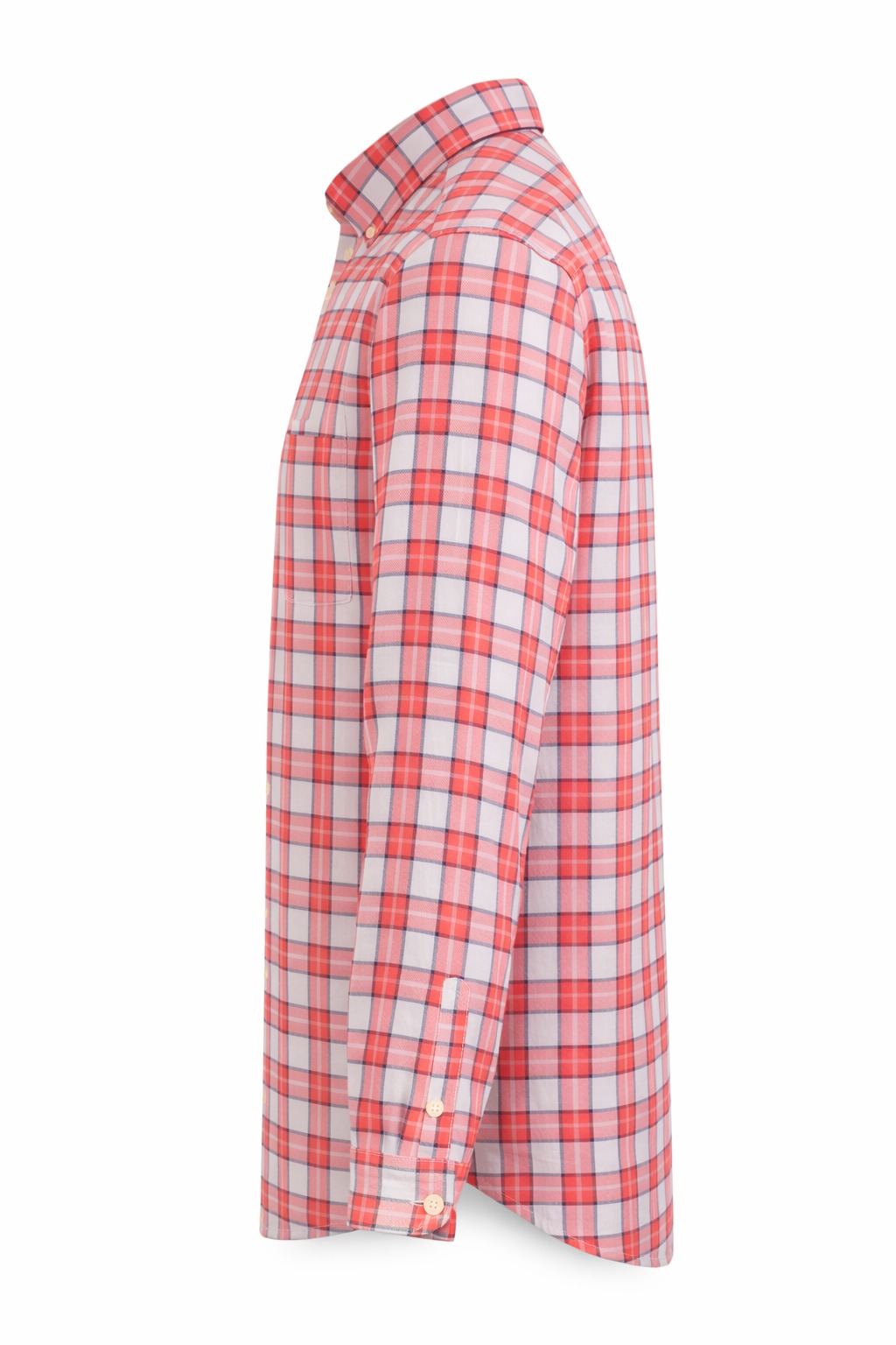 Crafted from premium cotton fabric, this shirt ensures breathable comfort and durability throughout the day. The classic check pattern in red, white, and subtle blue tones gives it a timeless and versatile appeal, making it suitable for casual outings, office casual settings, and weekend gatherings.