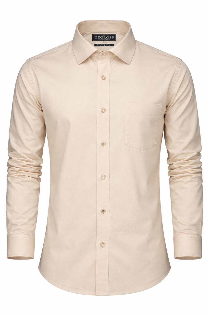 Add timeless elegance to your wardrobe with this solid beige shirt from Degross. Tailored in a comfortable regular fit, this shirt offers a clean and structured silhouette while ensuring ease of movement throughout the day.