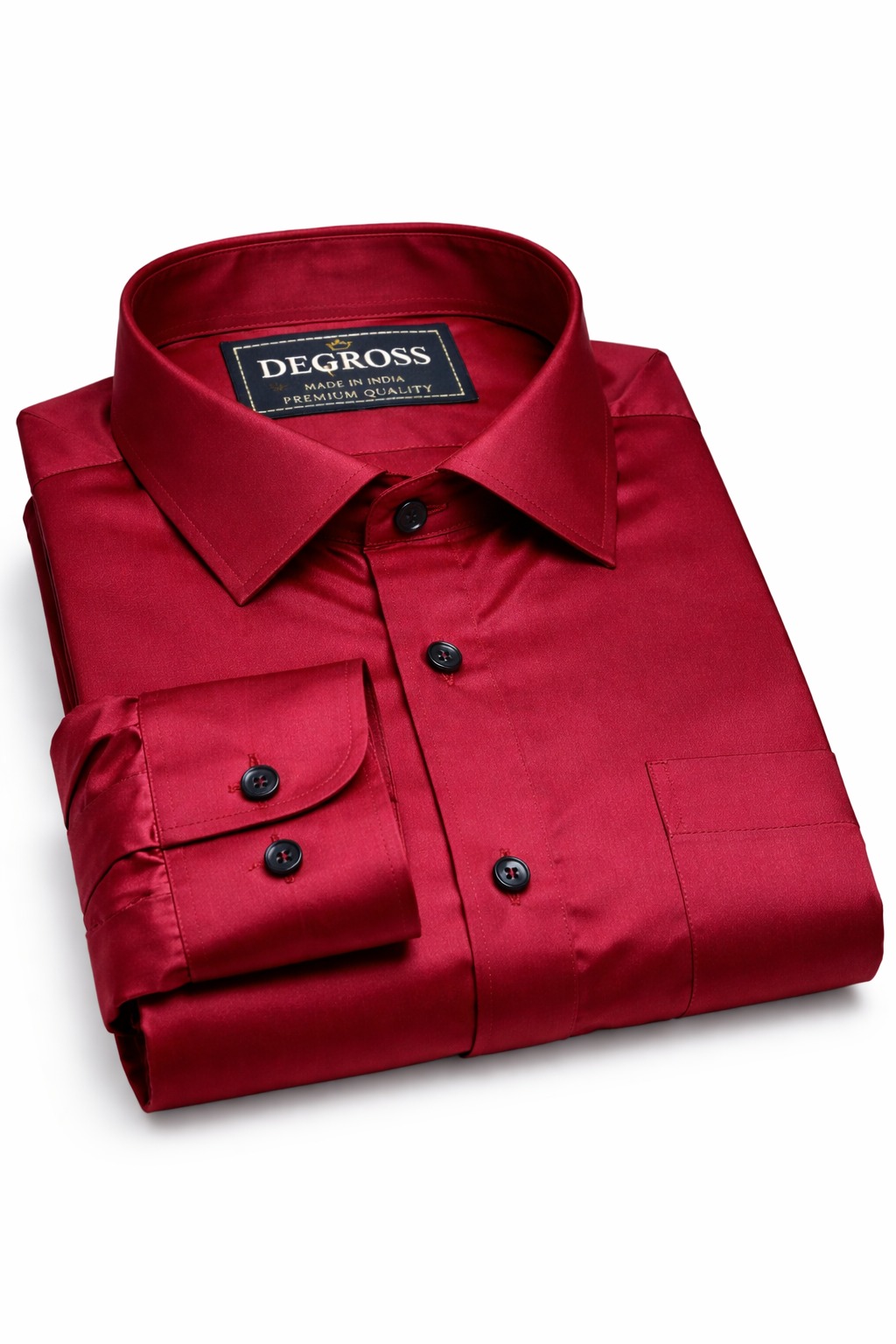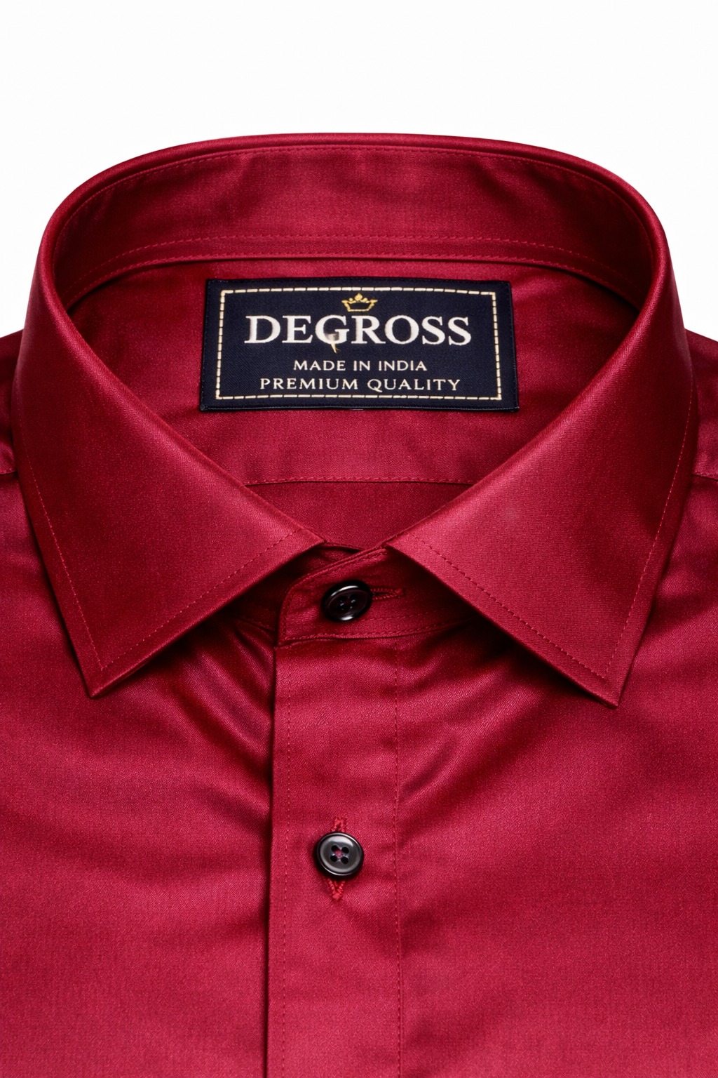 Add a bold and refined touch to your wardrobe with this solid maroon shirt from Degross. Designed in a comfortable regular fit, this shirt offers ease of movement while maintaining a sharp and structured appearance.