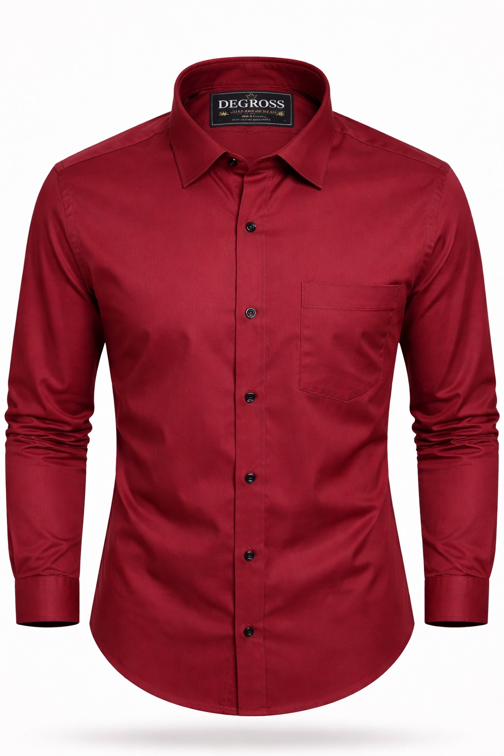 Degross Men Solid Maroon Regular Fit Full Sleeve Shirt